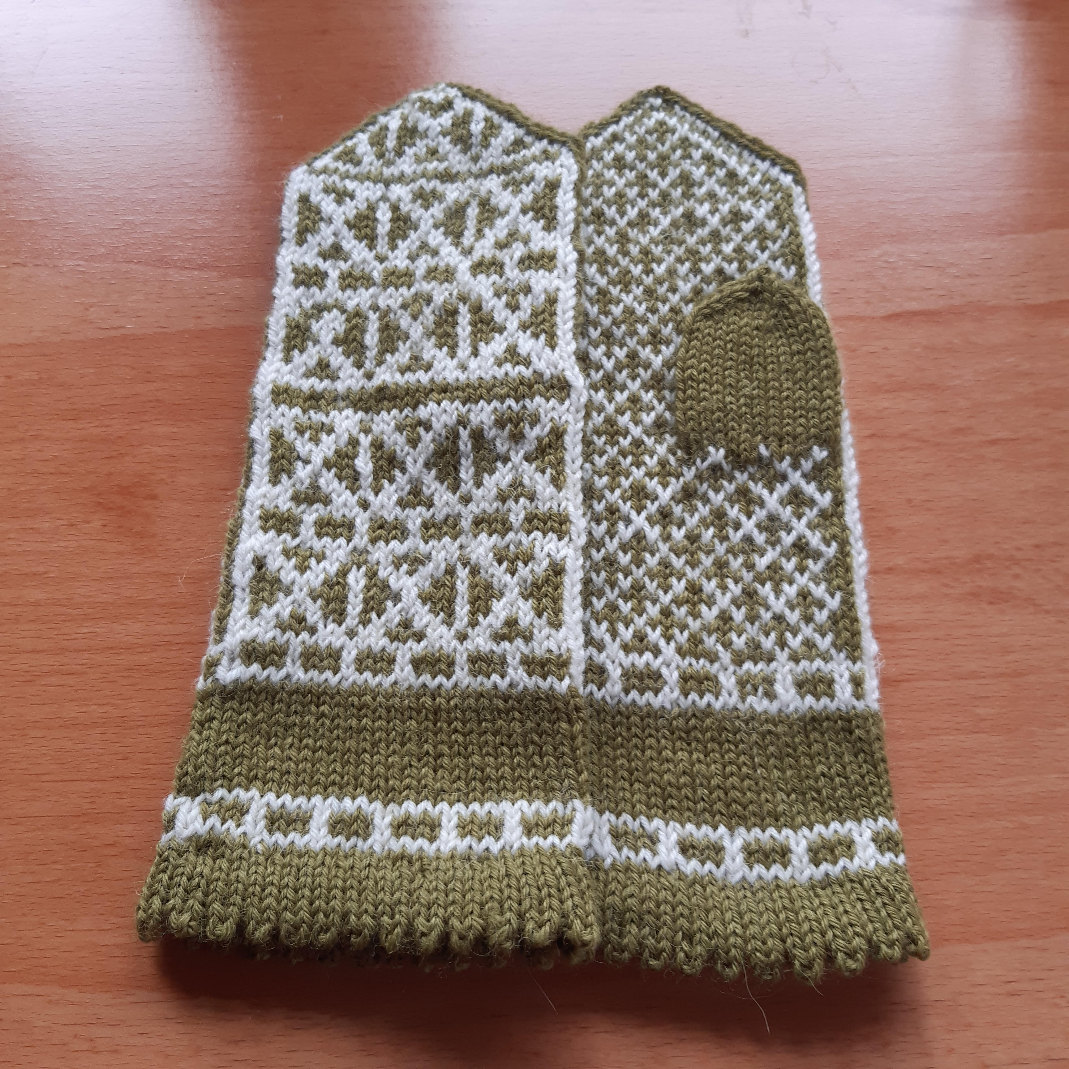 langoista. Kuviomallia käytetty myös lapasessa ja nyt on